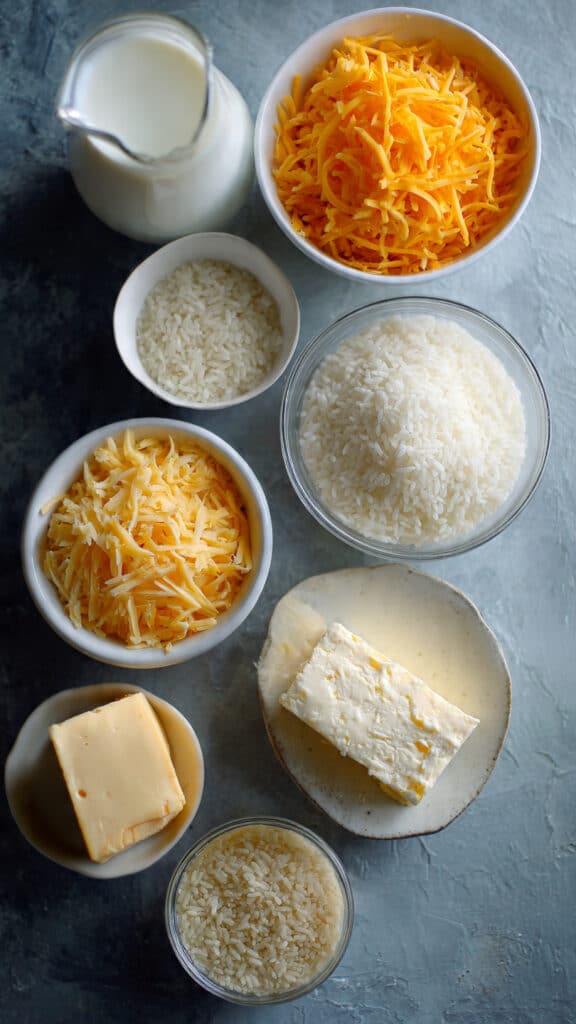 - Cooked Rice: 2 cups, preferably medium-grain, to absorb cheese sauce perfectly.
