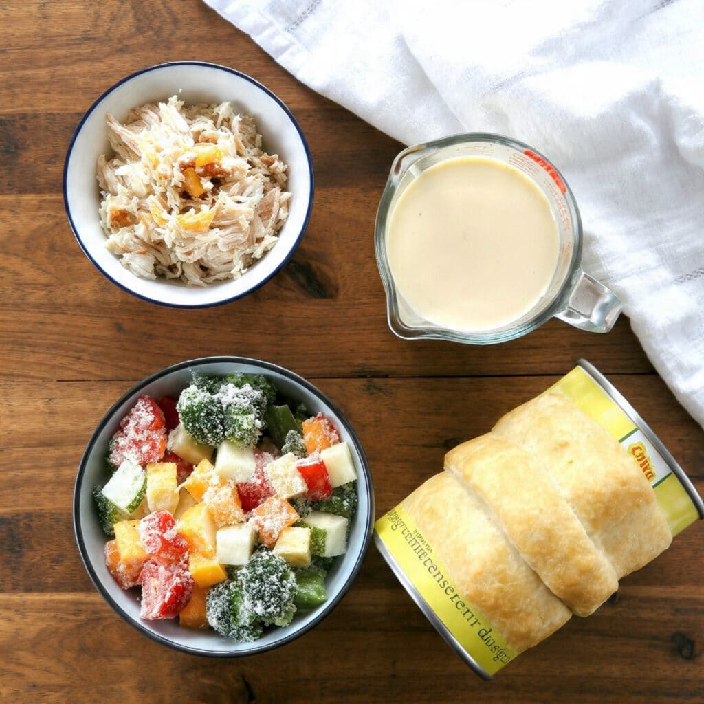 Ingredients in 4-Ingredient Dump Chicken Pot Pie
