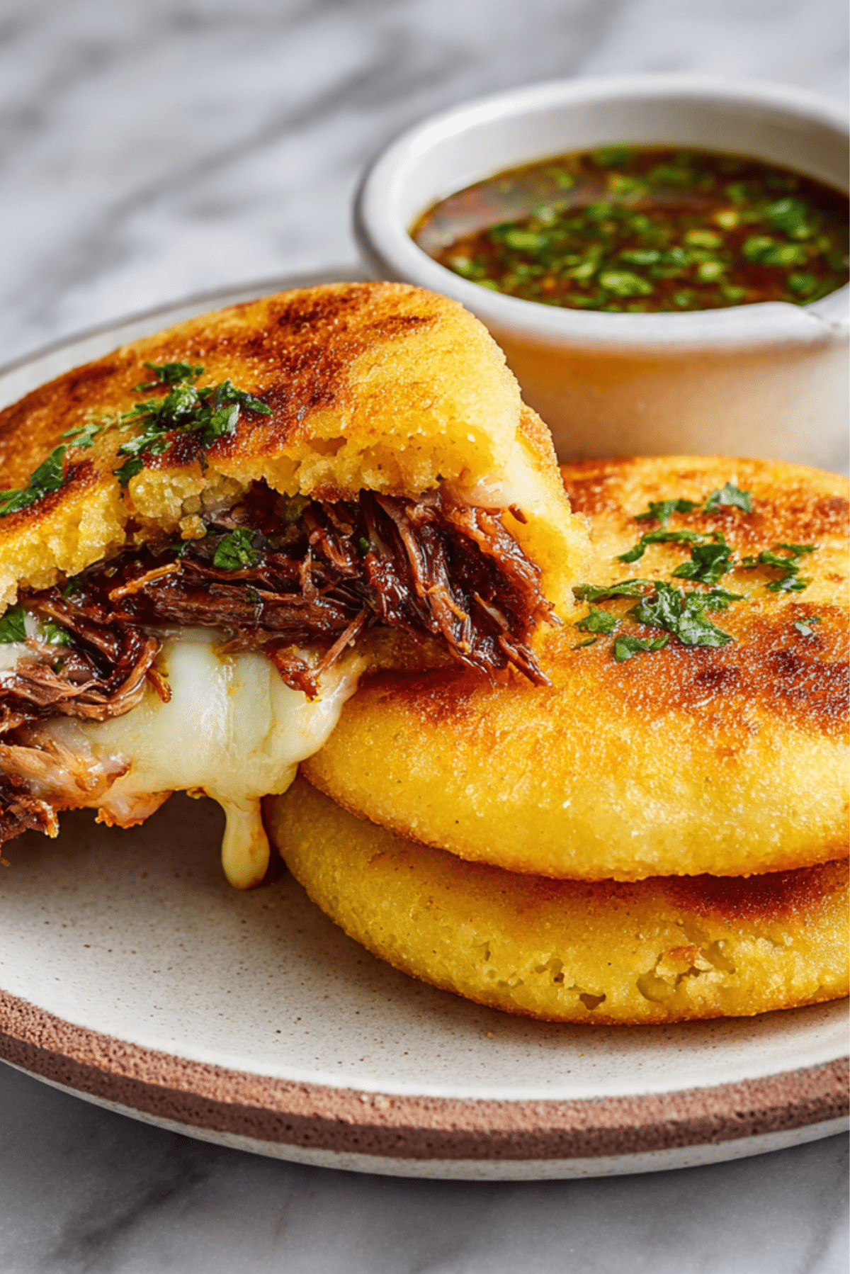 - Arepas de Pabellón: Shredded beef, black beans, and plantains inside.