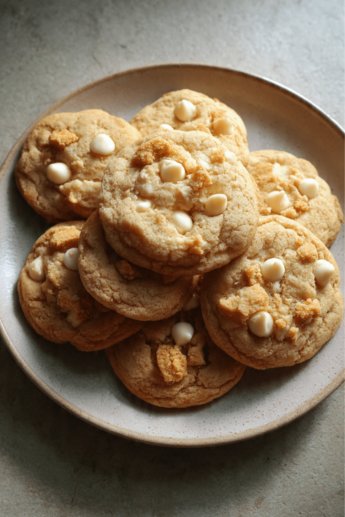 These cookies are all about soft and chewy. The pudding mix adds moisture, while the crushed cookies give texture. The sweet banana flavor isn’t overpowering—it’s light, mellow, and paired beautifully with creamy white chocolate. The contrast between the soft interior and slightly crisp edges makes every bite irresistible.