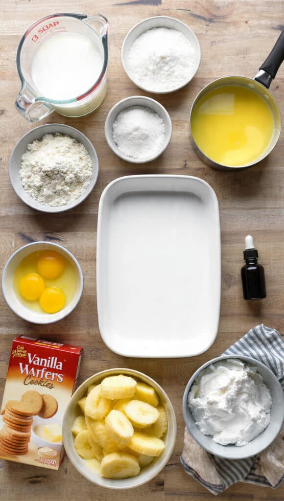 - Assemble the Dish: In a glass dish, layer vanilla wafers, sliced bananas, and pudding. Repeat layers until ingredients are used, finishing with pudding on top.