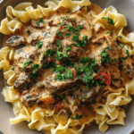 Beef Stroganoff is a creamy, comforting classic made with tender beef, savory mushrooms, and a rich sour cream sauce, perfect over egg noodles or mashed potatoes.