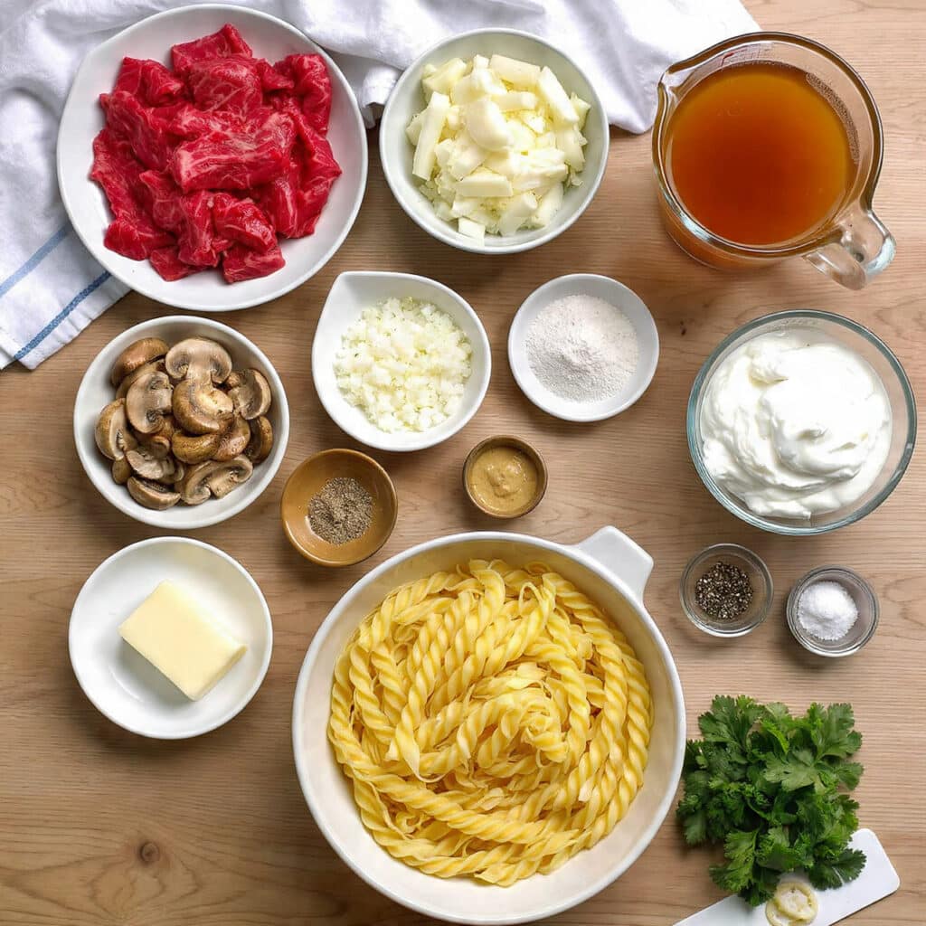 Sour Cream: Adds tang and silkiness. It balances the deep flavors of the beef and mushrooms with a cool creaminess.