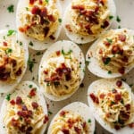 Keywords: carbonara deviled eggs, pancetta deviled eggs, parmesan deviled eggs, Italian twist deviled eggs