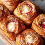 Flaky, golden swirled croissant buns filled with a creamy cheesecake center inspired by the iconic Buns From Home London pastries.