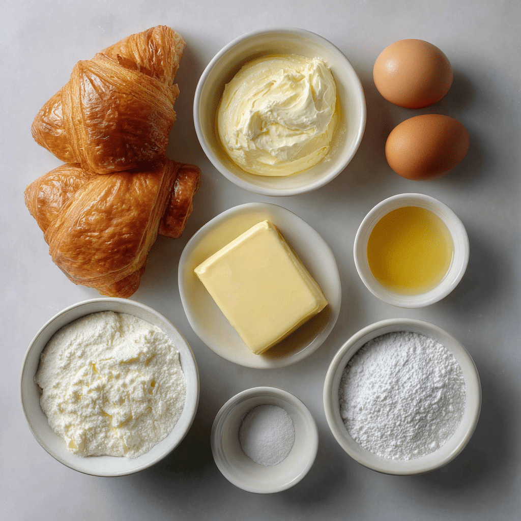 - Ready Made Puff Pastry: 1 sheet, cold Provides flaky layers similar to croissant dough.