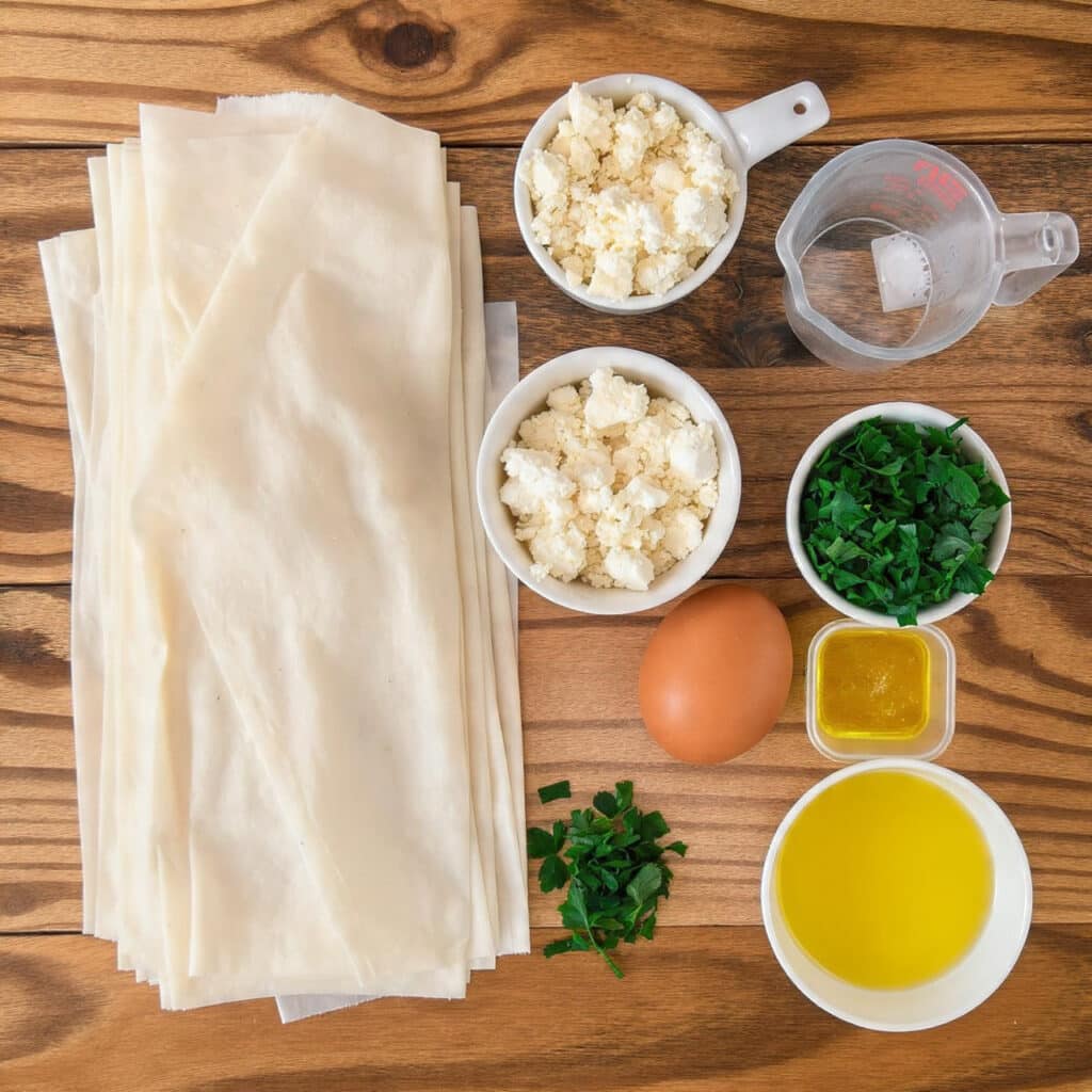 - In a bowl, combine feta, ricotta, egg, parsley, salt, and pepper. Mix well.