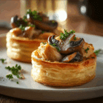 Vol-au-vents are a French creation, with their name literally meaning “windblown” to describe the lightness of the puff pastry. Traditionally, they were filled with luxurious ingredients like game, seafood, or rich ragouts. Over time, the chicken and mushroom combination became a favorite across Europe, especially in the UK and Ireland, where they often appear on festive menus. Their versatility is what has kept them popular — a classic that never fades.