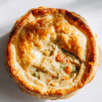 The joy of this dish comes from the contrast — a crisp, golden crust gives way to a velvety filling that coats every bite with creamy richness. The mix of tender chicken, sweet peas, and aromatic veggies creates layers of flavor that feel both homey and indulgent.