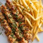 Chicken skewers with French fries bring together comfort and bold flavor in the most satisfying way. It is simple, hearty, and packed with texture in every bite. Once you try it, you will see why it never goes out of style. Give it a go, gather everyone around the table, and enjoy every crispy, juicy mouthful.