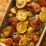 This dish is a play on textures and flavor layering. The chicken skin crisps up while the inside stays juicy. Potatoes become buttery inside with crisp, golden edges. The citrus caramelizes slightly, releasing sweet-tart juices that coat everything in a glossy, tangy glaze. Each bite is savory, zesty, and comforting.