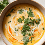 The moment this soup starts simmering, the kitchen fills with warm spices and gentle coconut aroma that instantly makes everything feel calmer. It is the kind of bowl you wrap your hands around, take a slow breath, and think yes, this is exactly what I needed today. Trust me, you’re going to love this from the very first spoonful.