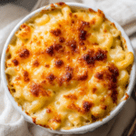 A rich and creamy baked macaroni and cheese with a velvety cheddar sauce and a golden, bubbling top. Elegant enough for gatherings, comforting enough for cozy family dinners.