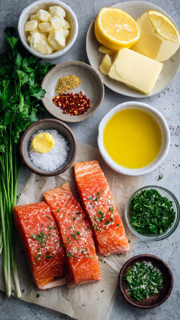 - Salmon Fillets: 4 pieces (about 6 oz each) – rich, flaky, and the perfect base for the bold butter sauce.