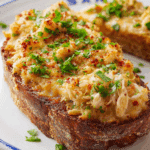 The combination of molten cheese and tender crab creates a creamy filling that sits inside crisp, buttery bread. As it bakes, the butter crisps the edges while the cheese turns into gooey pockets that stretch beautifully. Each bite gives you crunch, softness, and savory seafood richness.
