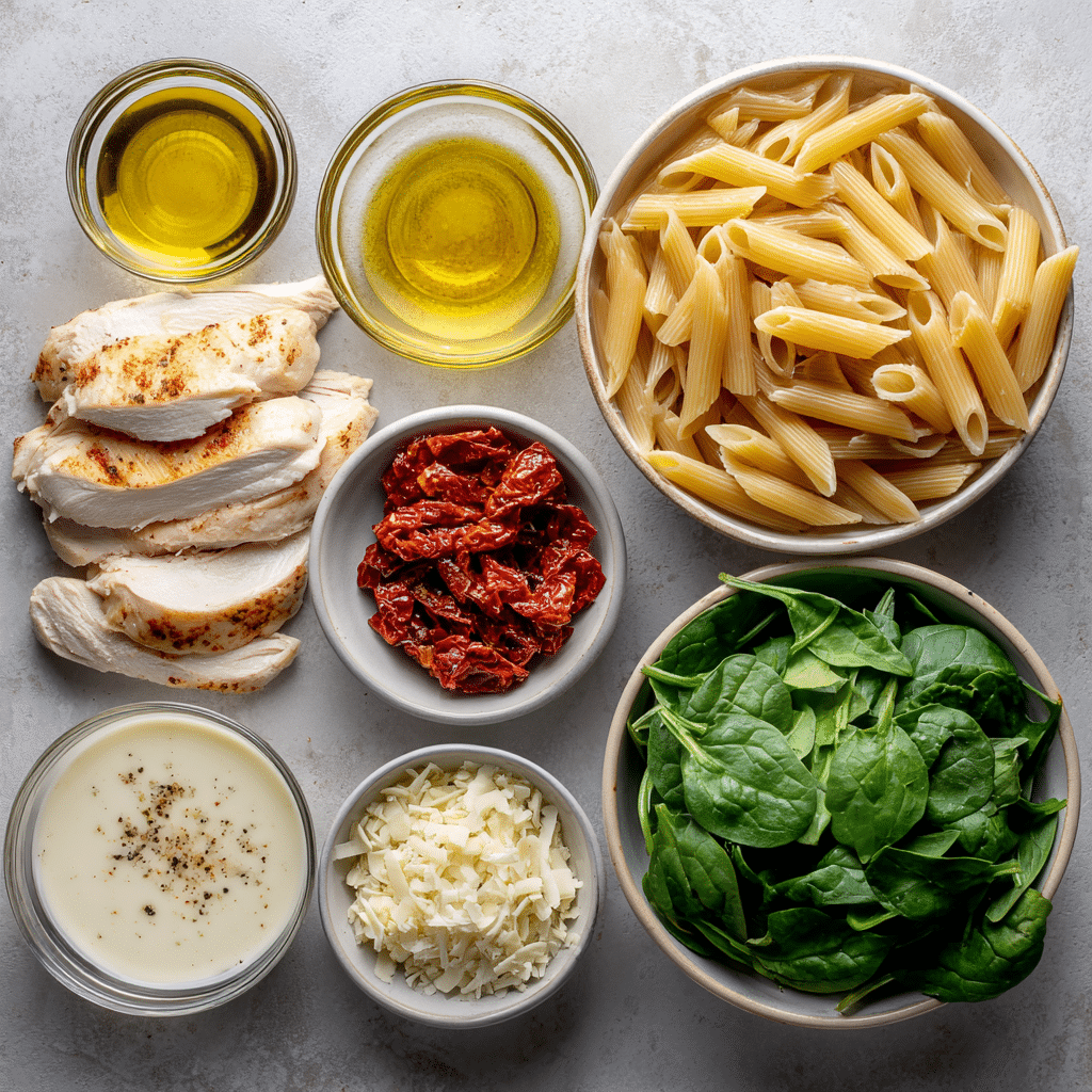 Ingredients in Creamy Tuscan Chicken Pasta (Xander’s Babar Pasta Copycat)
