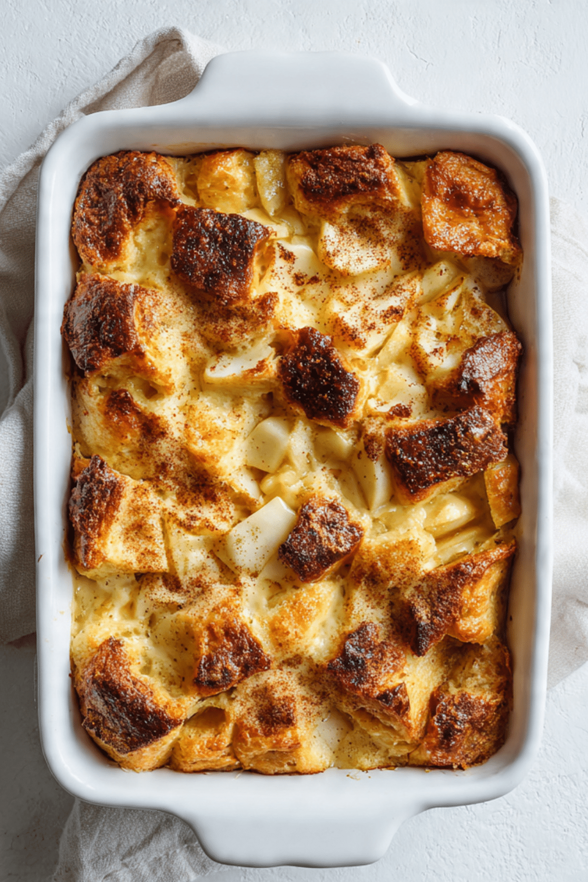 - Day-old bread cubes: 6 cups, cubed — soaks up the custard perfectly without turning mushy.