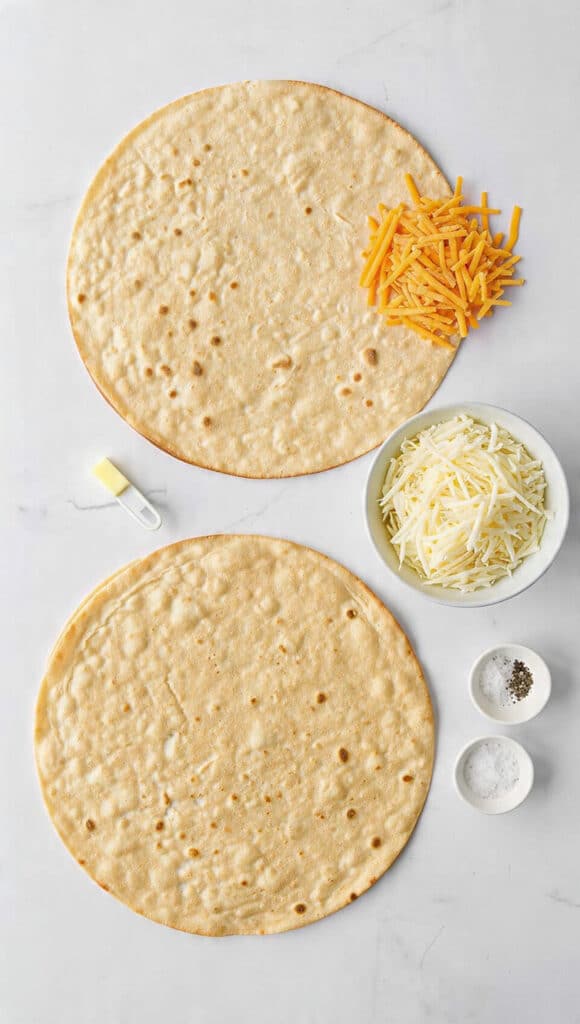 - Assemble the Dish: Place one tortilla in the skillet, sprinkle the cheese mixture evenly over it, then top with the second tortilla.