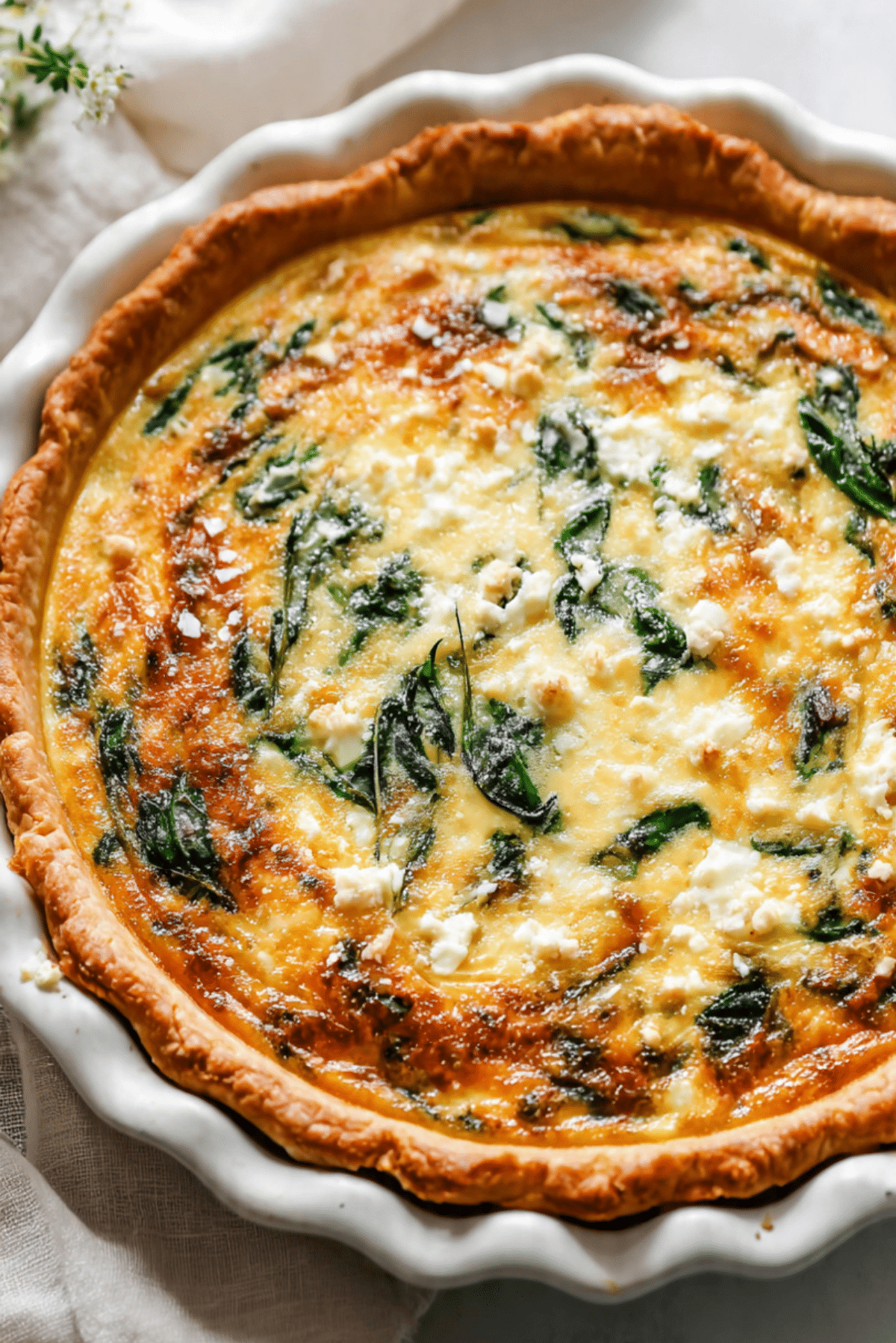 A creamy, savory quiche with tender spinach and melted cheddar baked in a flaky crust. Perfect for brunch, lunch, or a light dinner, this easy recipe delivers rich flavor and a silky texture in every bite.