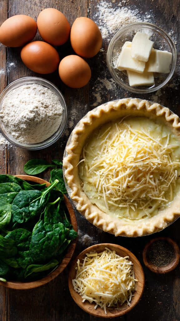 What makes this so special is that perfect balance between creamy and flaky. The crust shatters gently under your fork, while the rich egg filling melts in your mouth. You get tender bites of spinach and pockets of gooey cheese in every slice. It feels elegant, yet it is made with everyday ingredients you probably already have in your kitchen. This one’s a total game-changer for busy mornings or relaxed weekend brunches.