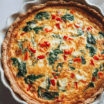 Quiche has a way of fitting into almost any moment. It feels special without trying too hard. The creamy egg filling hugs tender spinach and sweet red bell peppers, while the flaky crust gives you that satisfying contrast in every bite. It is warm, savory, and just rich enough to feel indulgent without being heavy. Let me tell you, it’s worth every bite.