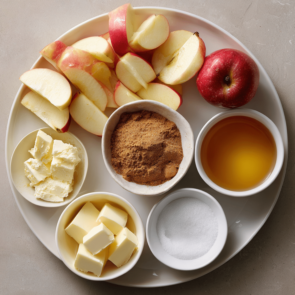 - Apples: 8 medium, peeled, cored, and sliced about 1/2 inch thick, the heart of the dish providing natural sweetness and texture.