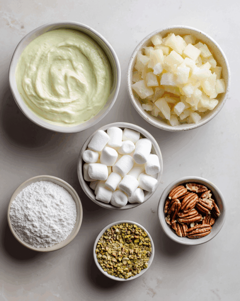 - Instant Pistachio Pudding Mix: 3.4 oz box, gives the dessert its signature flavor and soft green hue.