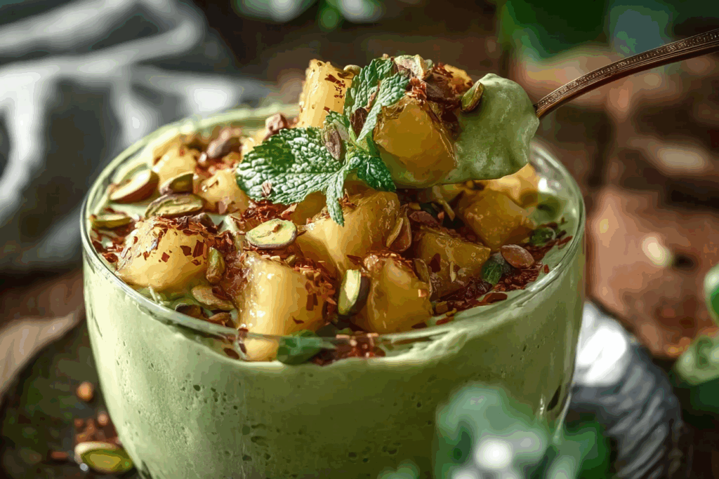 There’s something magical about a dessert that feels both nostalgic and refreshing. Fluffy Pistachio Pudding & Pineapple is one of those treats that brings a smile even before the first bite. The cool, creamy pistachio pudding folded with juicy pineapple and whipped topping creates a texture that’s light as a cloud yet full of flavor. It’s the kind of dessert you make once and keep coming back to, especially when you want something simple but delightfully satisfying.