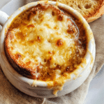 A rich and comforting French Onion Soup featuring slow-caramelized onions, savory beef broth, and a golden, bubbly Gruyère topping. Perfect for cozy nights or elegant starters, this classic soup is packed with flavor and warmth.