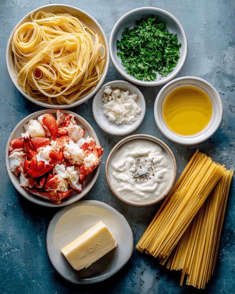 Ingredients in Gourmet Lobster Pasta in a Creamy Dream Sauce