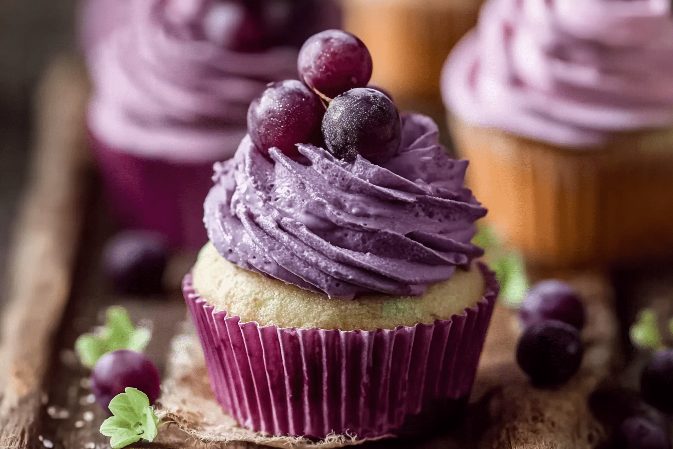 Presentation makes all the difference. Use contrasting liners, sprinkle edible glitter, or pipe two-toned frosting. A tiny fondant grape or a sugared rim around the cupcake adds that finishing sparkle.