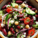 Some days, all you want is a bowl of something fresh, hearty, and bursting with flavor. That’s exactly what you get with this Greek Bean Salad. It’s bright, colorful, and loaded with wholesome ingredients like kidney beans, chickpeas, cucumbers, tomatoes, and a zesty lemon-oregano dressing. Whether you’re enjoying it as a light lunch, a side at a summer barbecue, or meal-prepping for the week, this salad delivers on taste and texture every time.