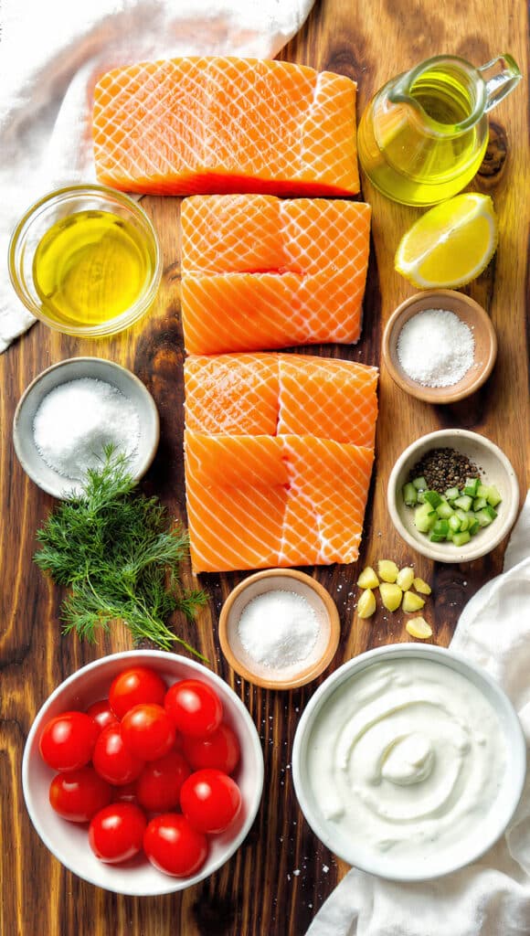 - Salmon Fillets: 4 pieces (6 ounces each) – rich in flavor and healthy fats