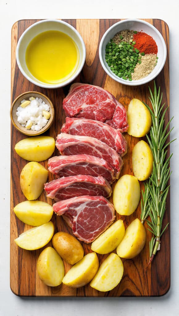 - Garlic: 4 cloves, minced, infuses both lamb and potatoes with savory depth.