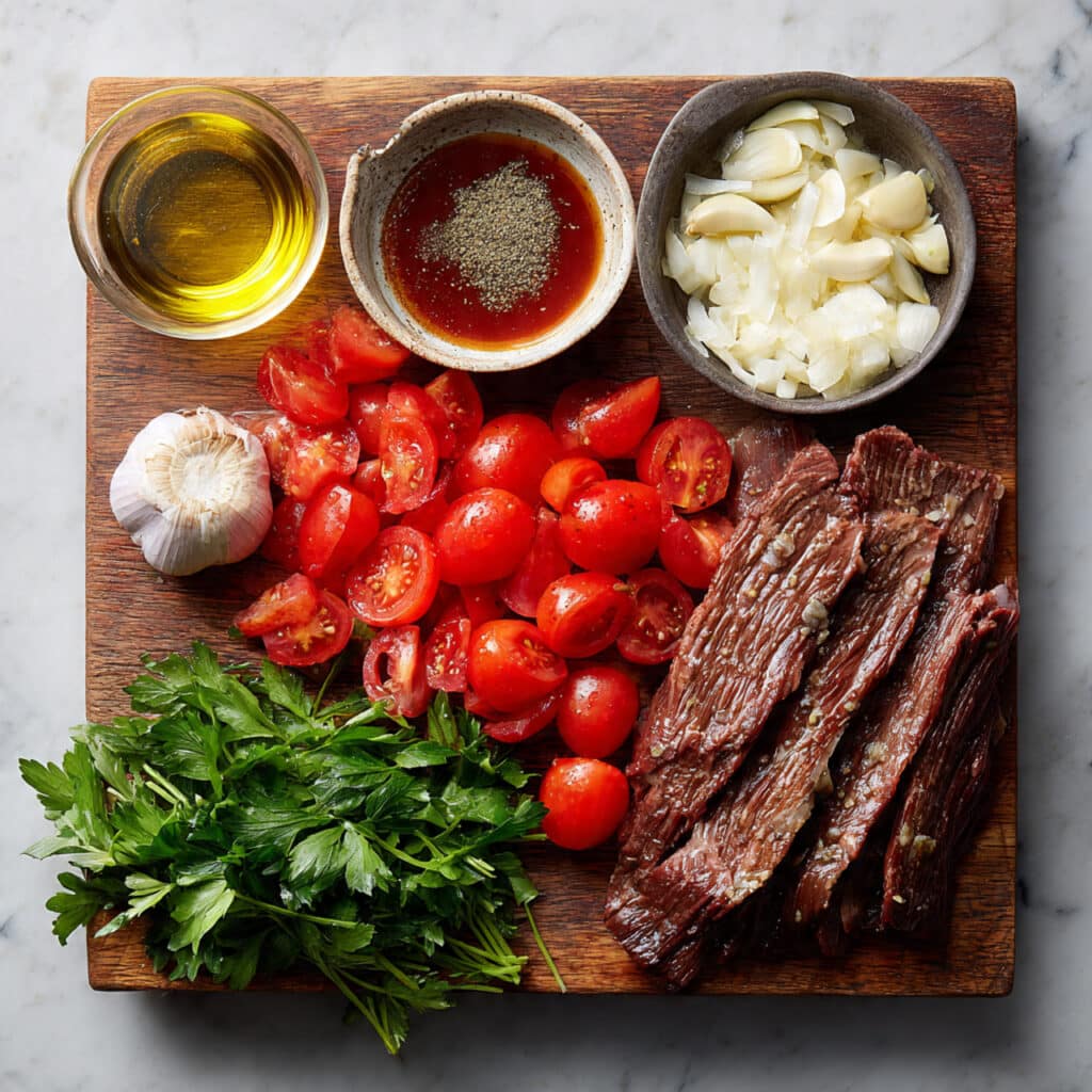 Ingredients in Grilled Skirt Steak with Grated Tomato Salsa