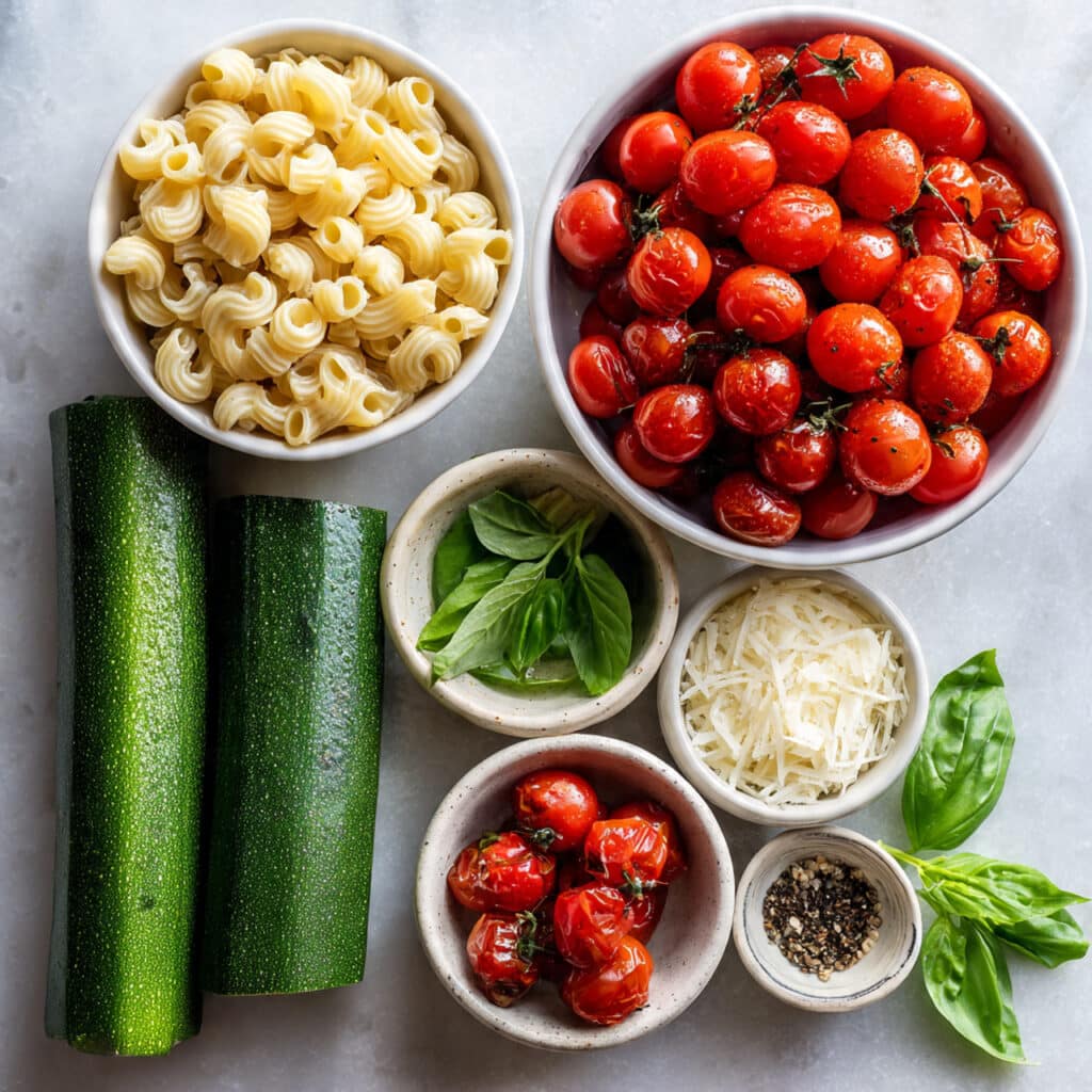 Budget-Friendly: Zucchini, pasta, and cherry tomatoes are affordable and easy to find, especially in season.