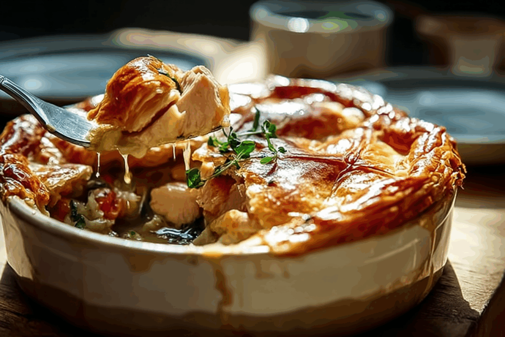 The contrast between the crisp, flaky pastry and the creamy, savory filling is what makes this pie so comforting. The sauce clings perfectly to the chicken, while the thyme adds a whisper of freshness. Each forkful gives you crunch, cream, and warmth all at once.