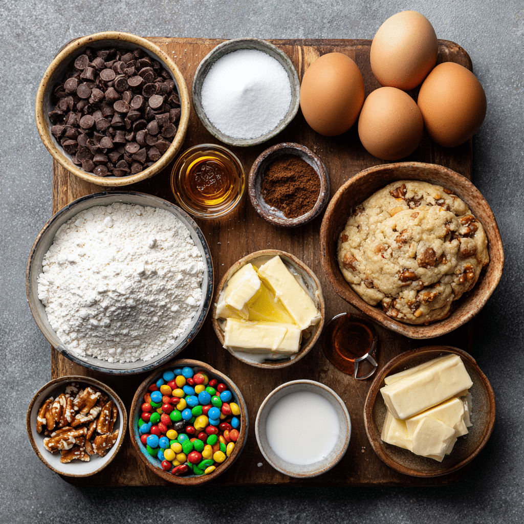 - M&M’s or Candy-Coated Chocolates: ¾ cup. Adds color and crunch.