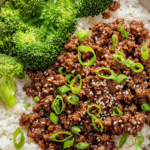 What really makes this dish sing is the contrast. The ground beef is tender and juicy, the rice is soft and fluffy, the scallions add crunch, and the sesame seeds lend a nutty snap. The sauce walks that fine line between sweet, salty, and a little spicy — coating every bite with flavor.
