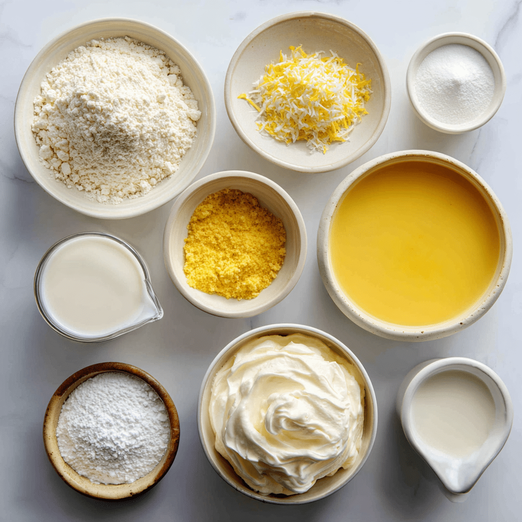- Lemon Cake Mix: 1 box (about 15.25 oz), forms the light, fluffy base of the cake.