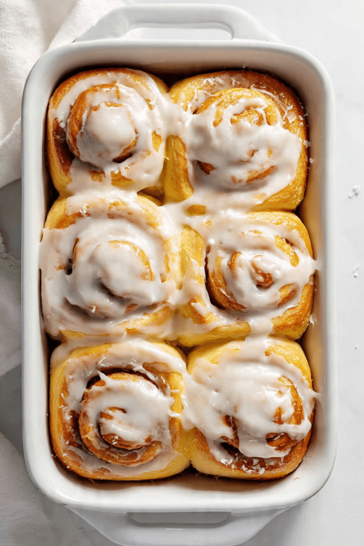 - Assemble the Dish: Roll dough into a large rectangle. Spread softened butter over the surface. Mix 3/4 cup sugar with lemon zest and sprinkle evenly over dough. Roll tightly and cut into 12 equal rolls. Place into a greased 9×13 inch baking dish and let rise 30 minutes.