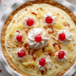 Some desserts just feel nostalgic the moment you see them, and Million-Dollar Pie is one of those classics. It is creamy, fruity, a little crunchy, and completely irresistible. The filling is light yet rich, studded with pineapple and coconut, all tucked into a buttery graham cracker crust. Then comes that fluffy whipped topping and bright cherries on top. Trust me, you are going to love this.