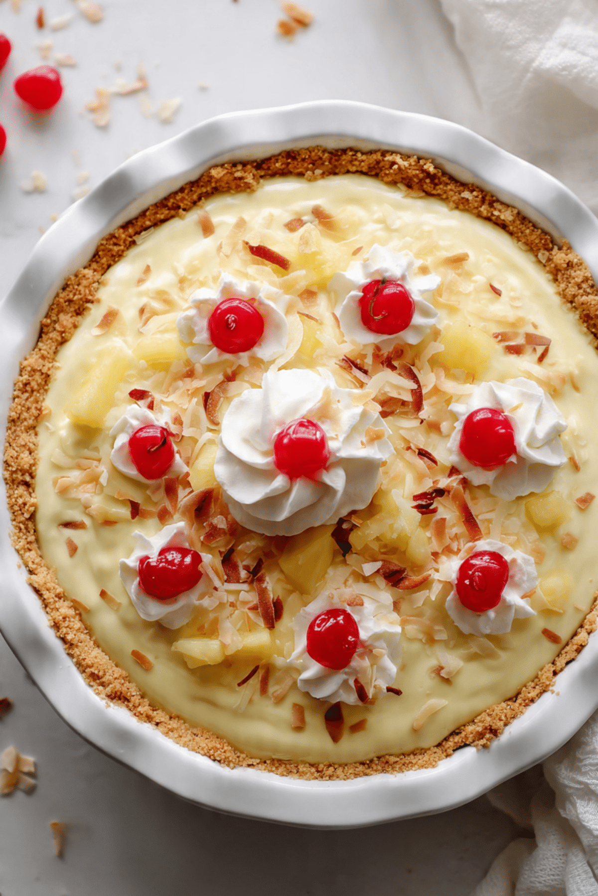 The filling is creamy and lightly fluffy, with bits of pineapple and coconut in every bite. The crust provides subtle crunch, and the pecans add depth. It is sweet, tangy, and satisfying all at once.