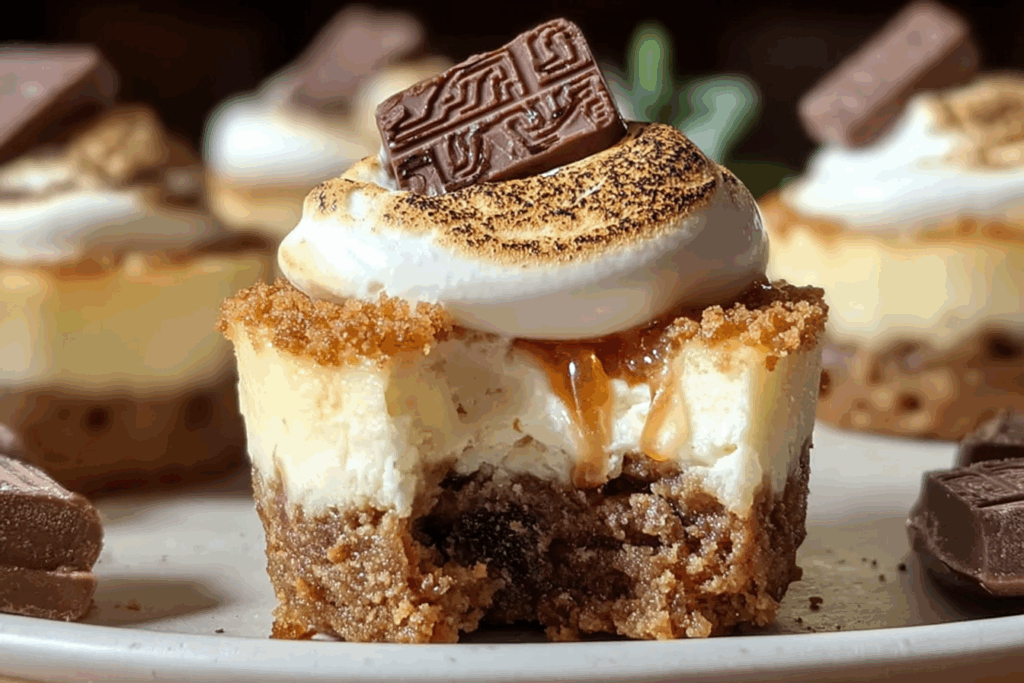 Keywords: mini cheesecakes, s’mores, chocolate dessert, marshmallow cheesecake, easy dessert