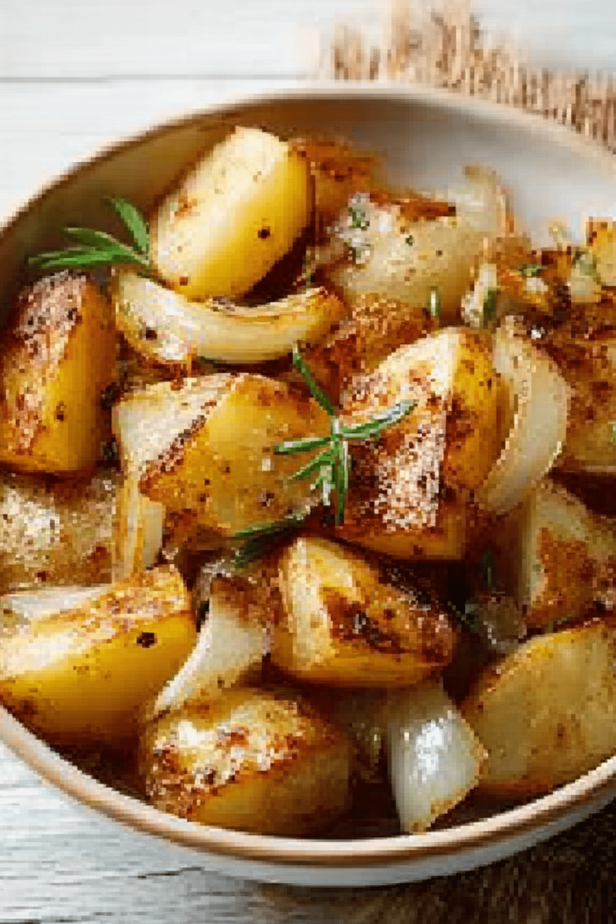 Golden, crispy Yukon Gold potatoes roasted to perfection with sweet caramelized onions and a touch of herbs. A simple, comforting side dish that fits every meal and brings warmth to your table.