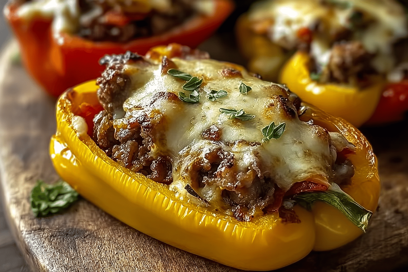 The Philly Cheesesteak was born in the 1930s in Philadelphia, when Pat Olivieri — a hot dog vendor — decided to grill some beef on his stand, attracting hungry cab drivers who loved the idea. Over time, this humble sandwich evolved, introducing cheese and soft rolls. This stuffed pepper version keeps that authentic flavor but swaps the bread for juicy bell peppers, letting the filling shine with every bite.
