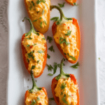 Colorful mini sweet peppers filled with creamy, tangy pimento cheese made with sharp cheddar and a smooth cream cheese base, perfect for an easy no cook appetizer.
