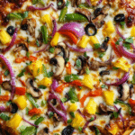 Imagine pulling a bubbling pizza out of the oven, the scent of roasted vegetables, sweet pineapple, and golden cheese wafting through the kitchen. The crust is crisp and airy, the toppings are vibrant and generous, and every slice feels like a celebration of color, comfort, and flavor. That’s exactly what this Pineapple Veggie Lovers Pizza delivers — and let me tell you, it’s worth every bite.