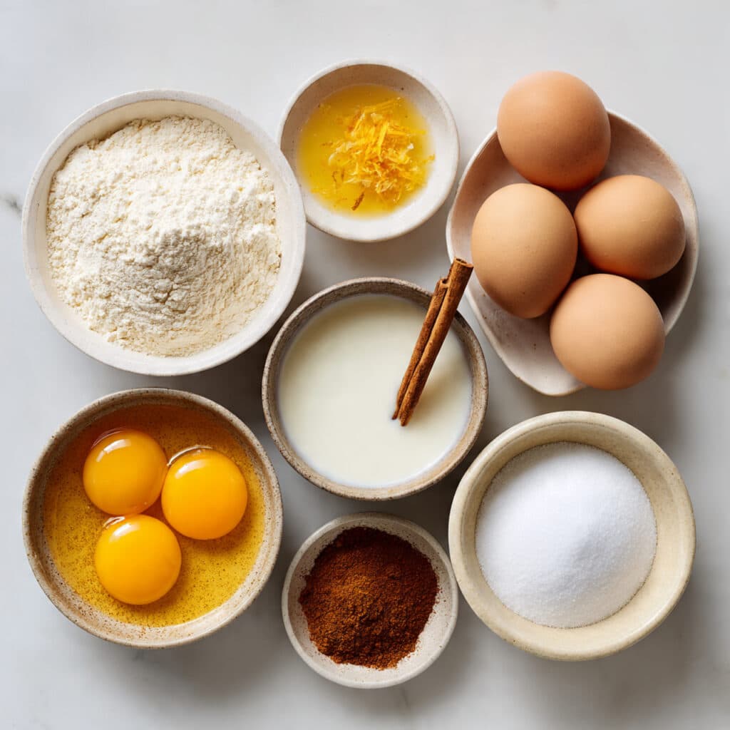 • Egg Yolks: 6 large – Creates the golden custard
