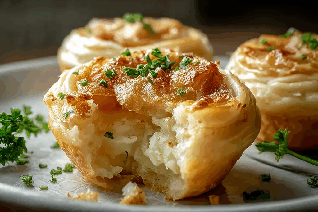 Flaky, golden-brown Potato Knishes filled with creamy mashed potatoes and caramelized onions — a comforting classic inspired by Eastern European traditions, perfect as a snack, appetizer, or side dish.